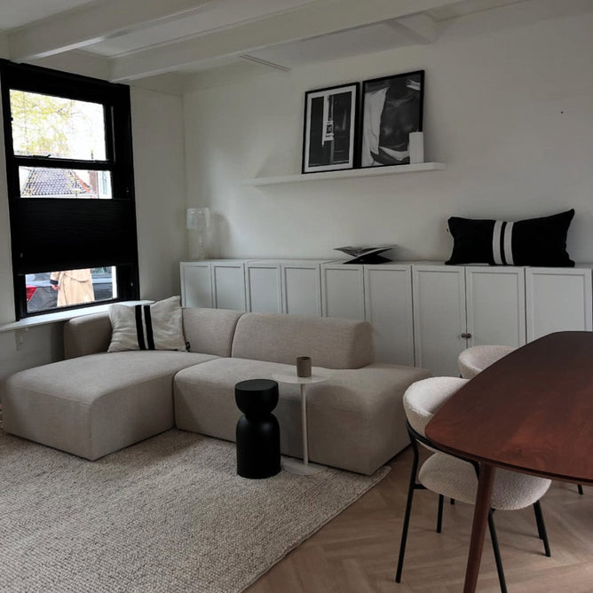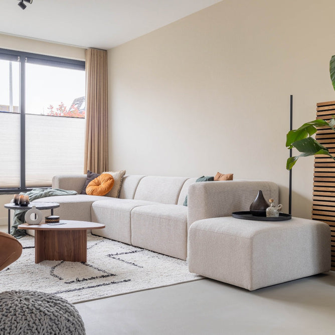 Elementenbank Finn is opgebouwd uit een houten karkas, voorzien van metalen nosag ondervering, daarop een Bonell binnenvering en HR-koudschuim. Dit is een hoogwaardige vulling die in het gebruik zachter wordt. Je zit als het ware op een boxspring.